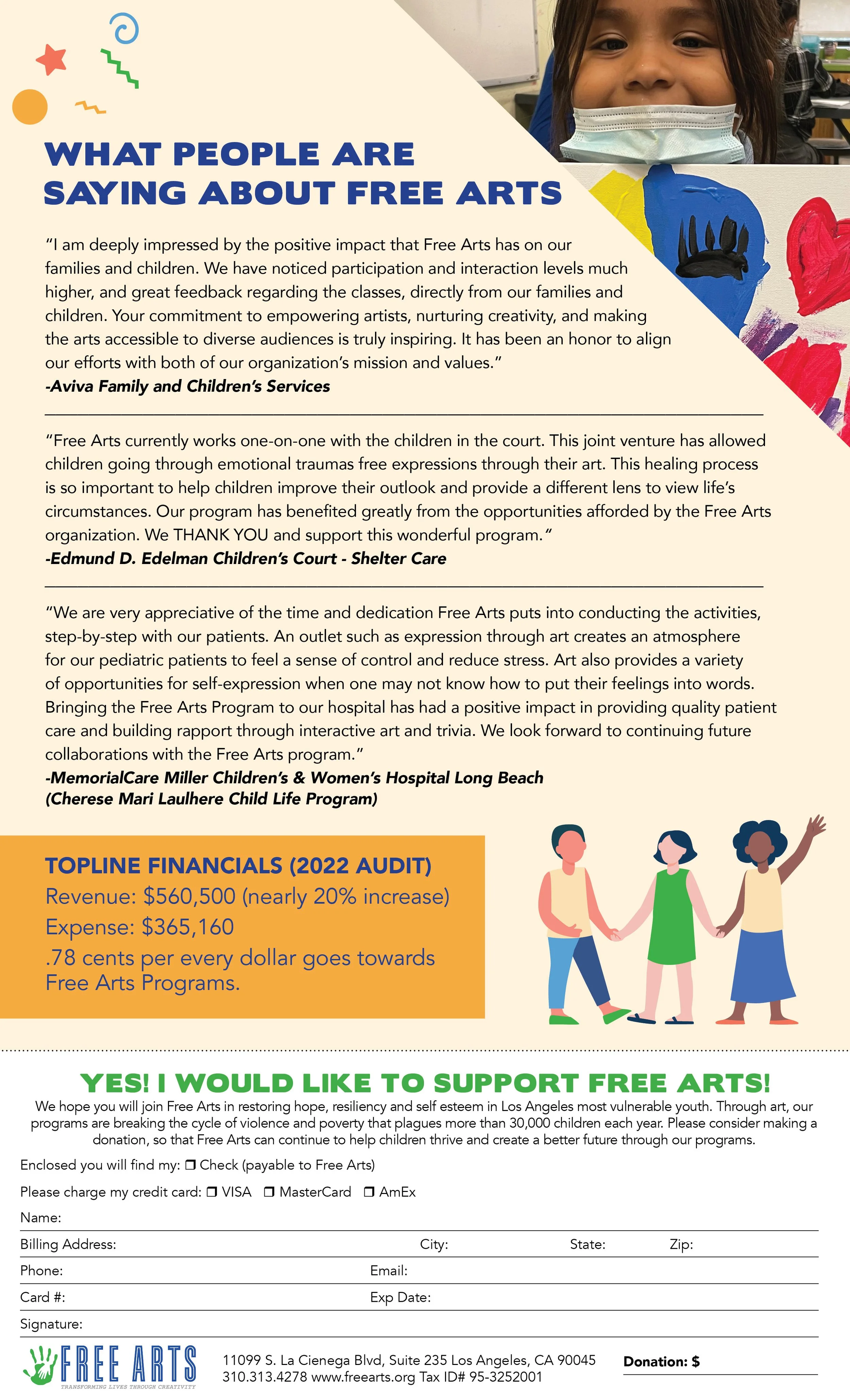 Free Arts empowers Los Angeles youth, many of whom are from underserved and marginalized communities who have faced significant challenges. Every program, curriculum based activity and event is designed to build resilience, self-esteem, and skills to lead to a brighter future.